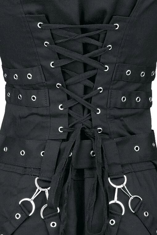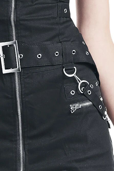 Schwarzes Bondage Minikleid mit einem durchgehenden Zipper auf der Front.