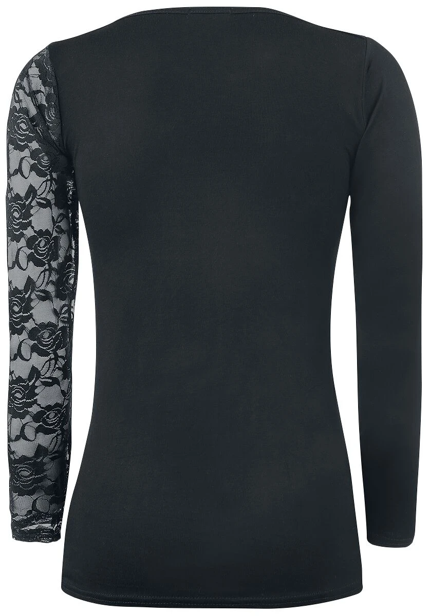 Ein femininer Bestseller aus dem Hause Spiral ist das schwarze „Burnt Rose“-Langarmshirt mit farblich abgesetztem Druck auf der Front. Letzterer besteht aus einer brennenden Rose, die sowohl den Ärmel aus schwarzer, floraler Spitze als auch den Einsatz auf der rechten Seite des Shirts betont. Ein U-Boot-Ausschnitt unterstreicht zusätzlich Deine Weiblichkeit.
