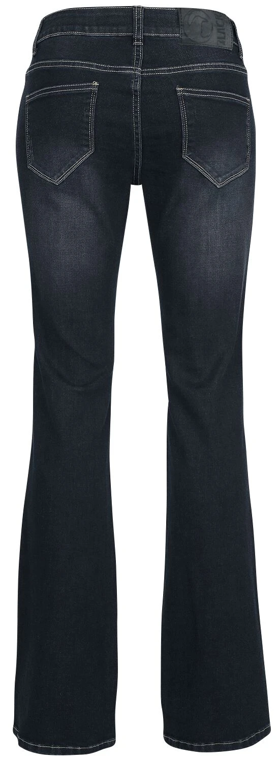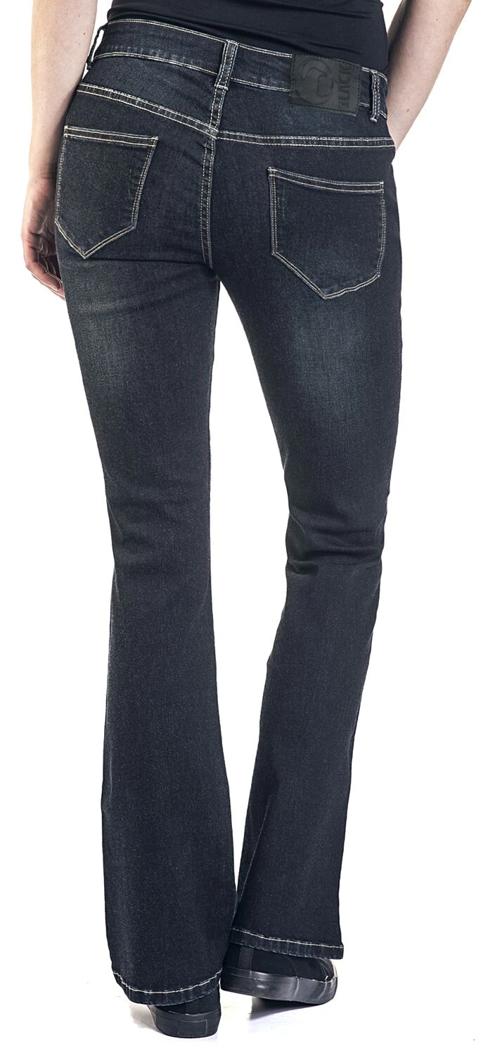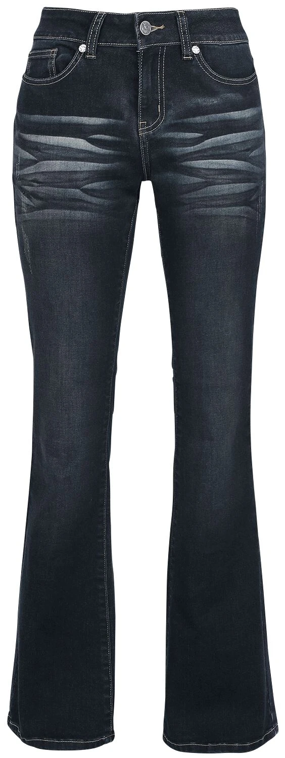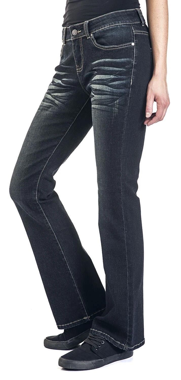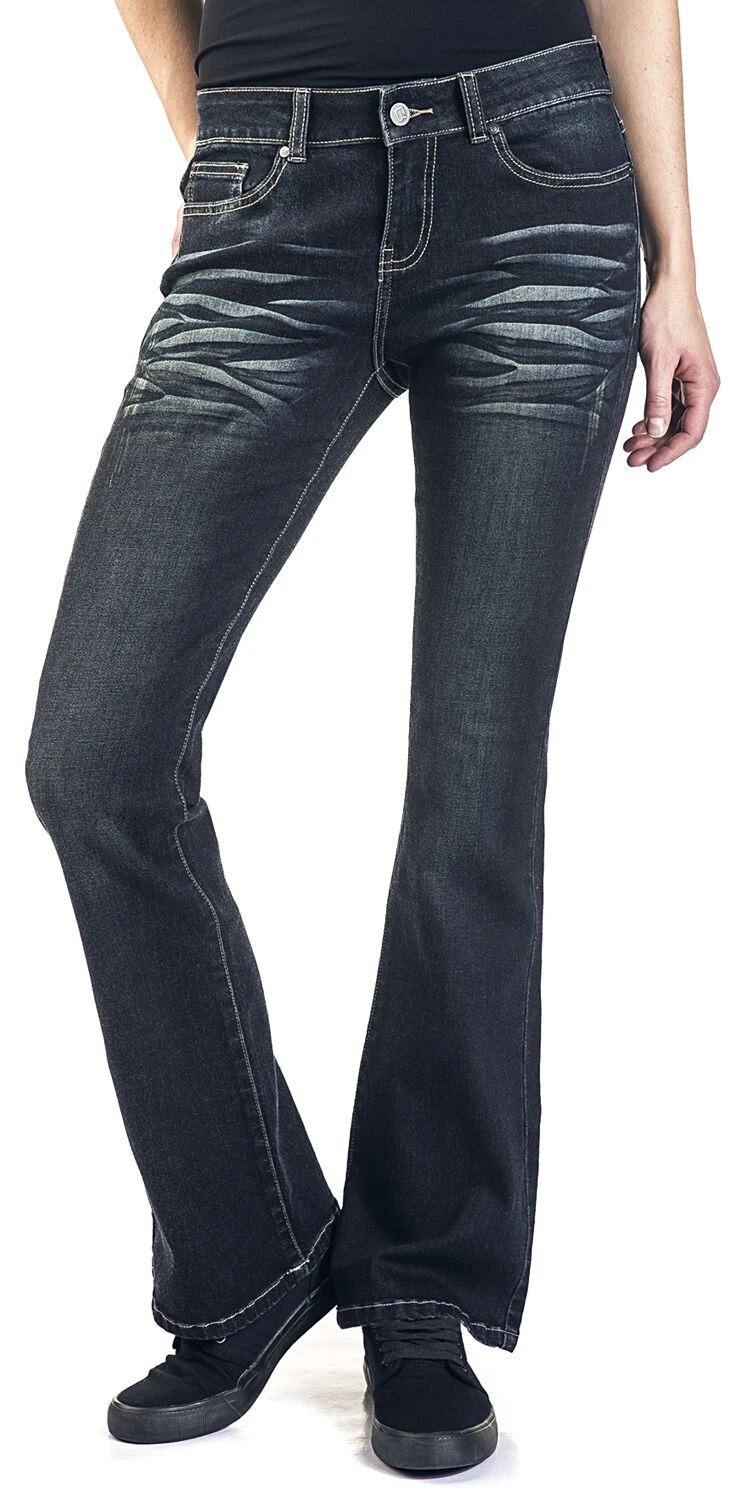 Black Premium by EMP bietet dir jetzt exklusiv diese Jeans namens „Grace“ in Dunkelblau an. Sie ist im Boot-Cut und im 5-Pocket Style gearbeitet. Optisch ist sie mit einer Waschung und einem Label am hinteren Hosenbund ausgestattet. Die Hose hat Gürtelschlaufen und ist mit einem Knopf und einem Reißverschluss zu schließen.