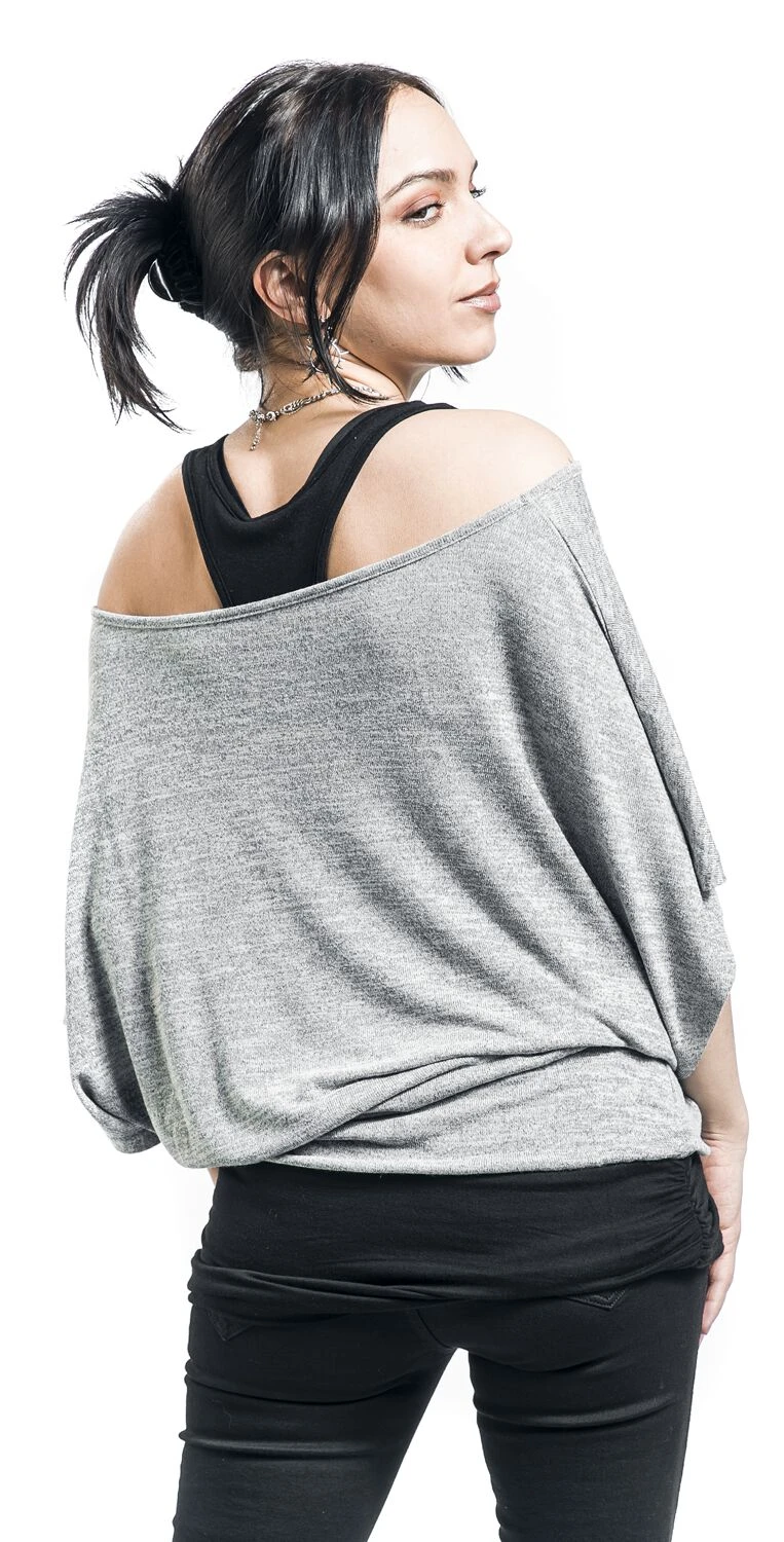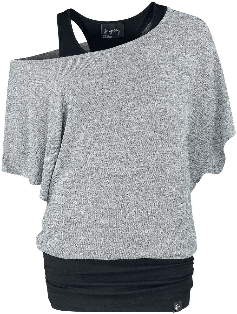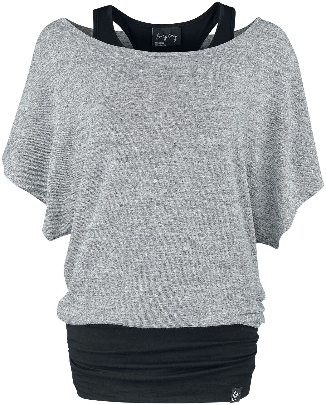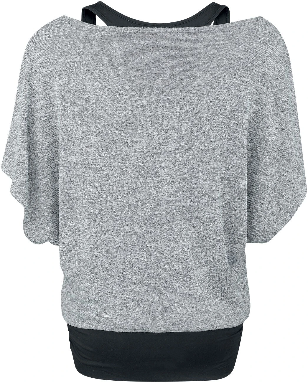 – 2-Teilig: Schwarzes langes Racerback Untertop & darüber weit geschnittenes Shirt in Grau
