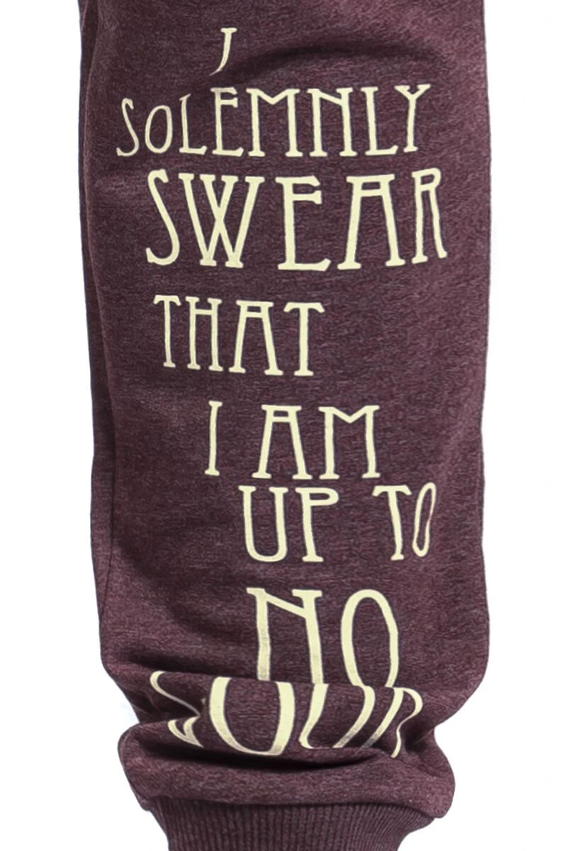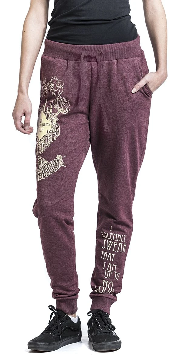 Ob beim Sport oder auf der Couch, mit der EMP-exklusiven Solemny Swear – Trainingshose machst du immer eine gute Figur. Die Trainingshose mit Gummibund und Tunnelzug ist beidseitig mit Motiven und Sprüchen der Karte des Herumtreibers aus den Harry Potter-Filmen bedruckt. Die Hose hat seitliche Einschubtaschen und breite elastische Bündchen am Fußende.