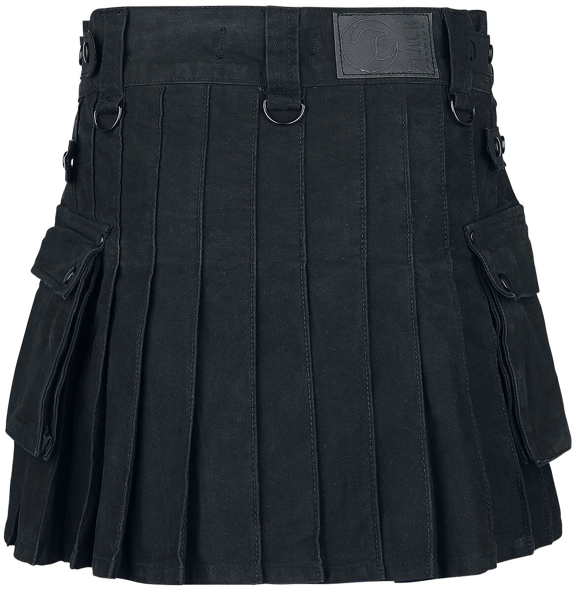 Der Kilt von Black Premium by EMP ist im klassischen Stil eines Schottenrocks gehalten. Anders als bei seinen klassischen Kollegen, wurde dieser Rock jedoch komplett in Schwarz gefertigt. Er verfügt darüber hinaus über Kunstlederdetails und aufgesetzte Taschen an der Seite. Natürlich ist er dabei auch in Falten gelegt.
