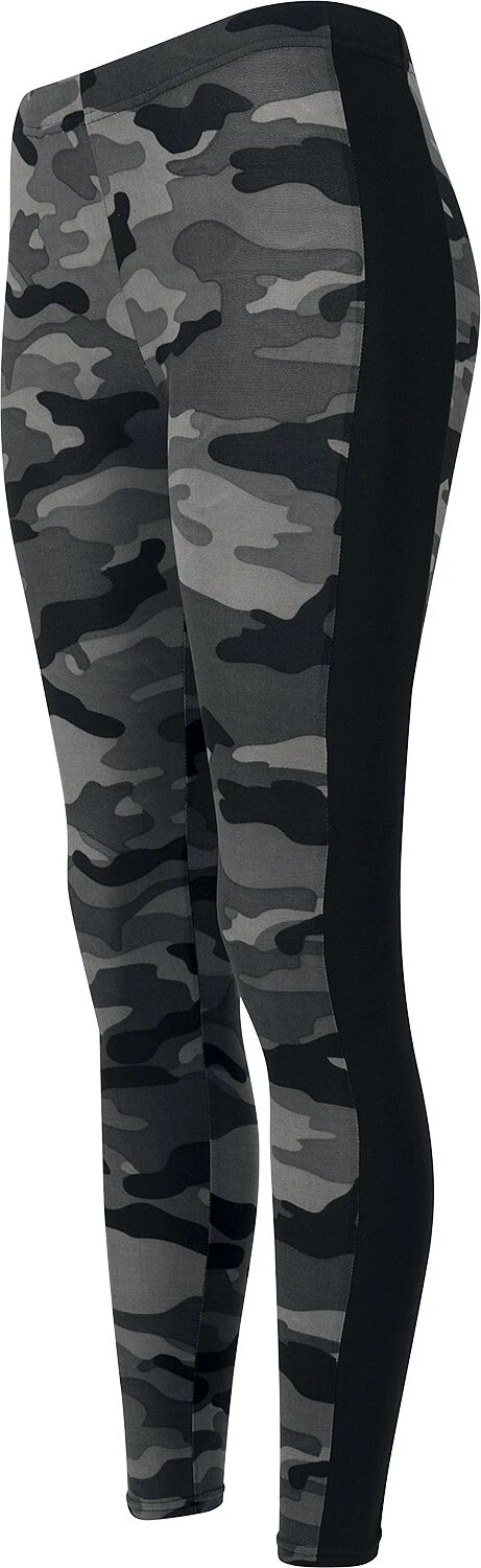 Die Ladies Camo Stripe Leggings von Urban Classics sind in einem coolen Camouflage Muster in Grau-Schwarz gehalten. Außerdem verläuft je ein Streifen an der Außenseite des Beins nach unten und lockert das Design somit gekonnt auf. Selbstverständlich sind die Leggings dabei auch enganliegend geschnitten und mit einem Gummizug versehen.