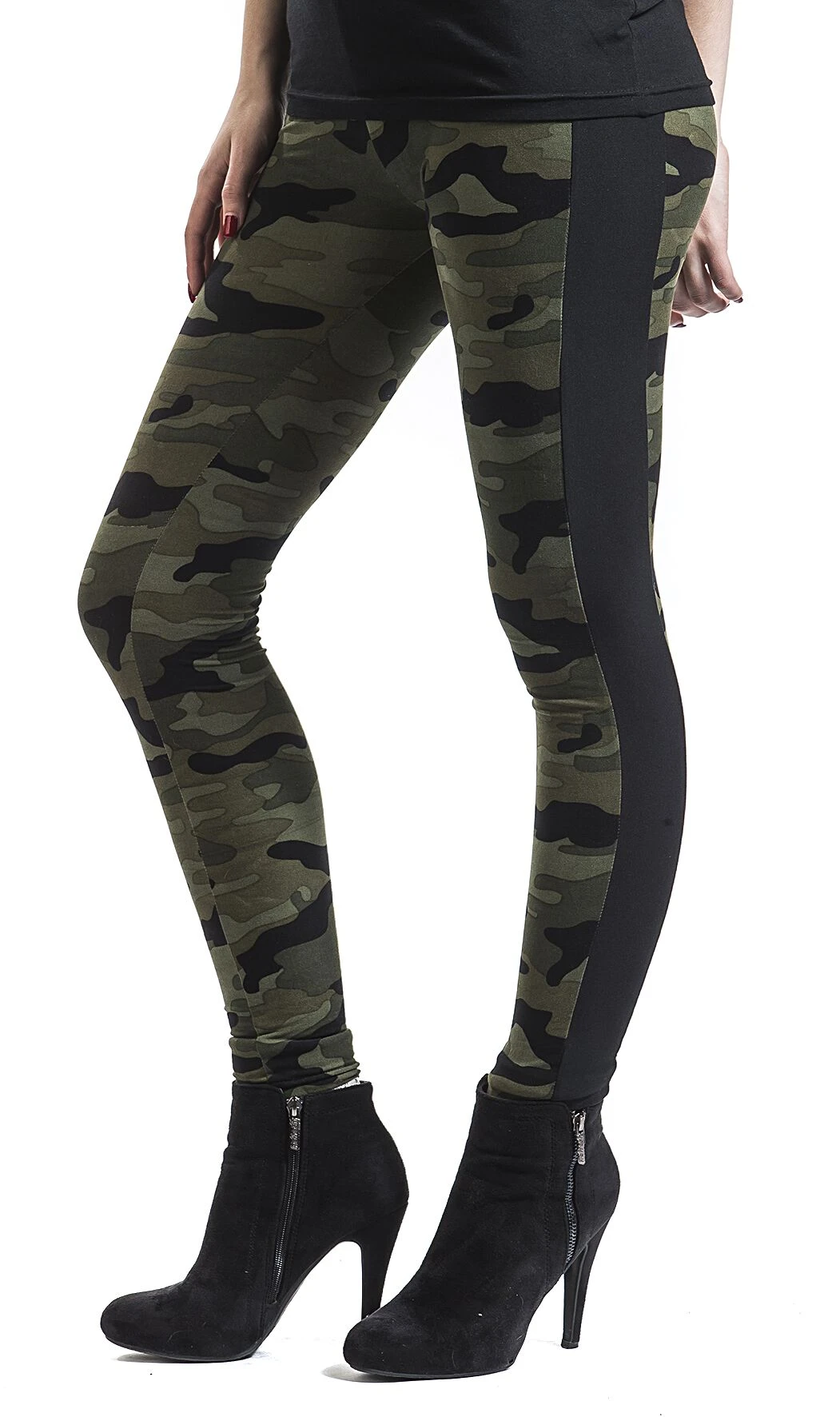Die Ladies Camo Stripe Leggings von Urban Classics sind in einem coolen Camouflage Muster gehalten. Darüber hinaus verläuft je ein Streifen an der Außenseite des Beins nach unten. Natürlich sind die Leggings dabei auch enganliegend geschnitten und mit einem Gummizug versehen.