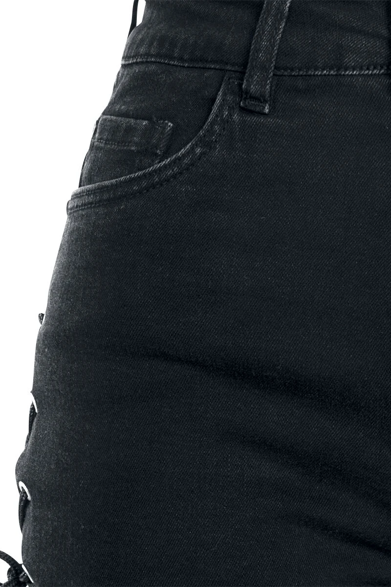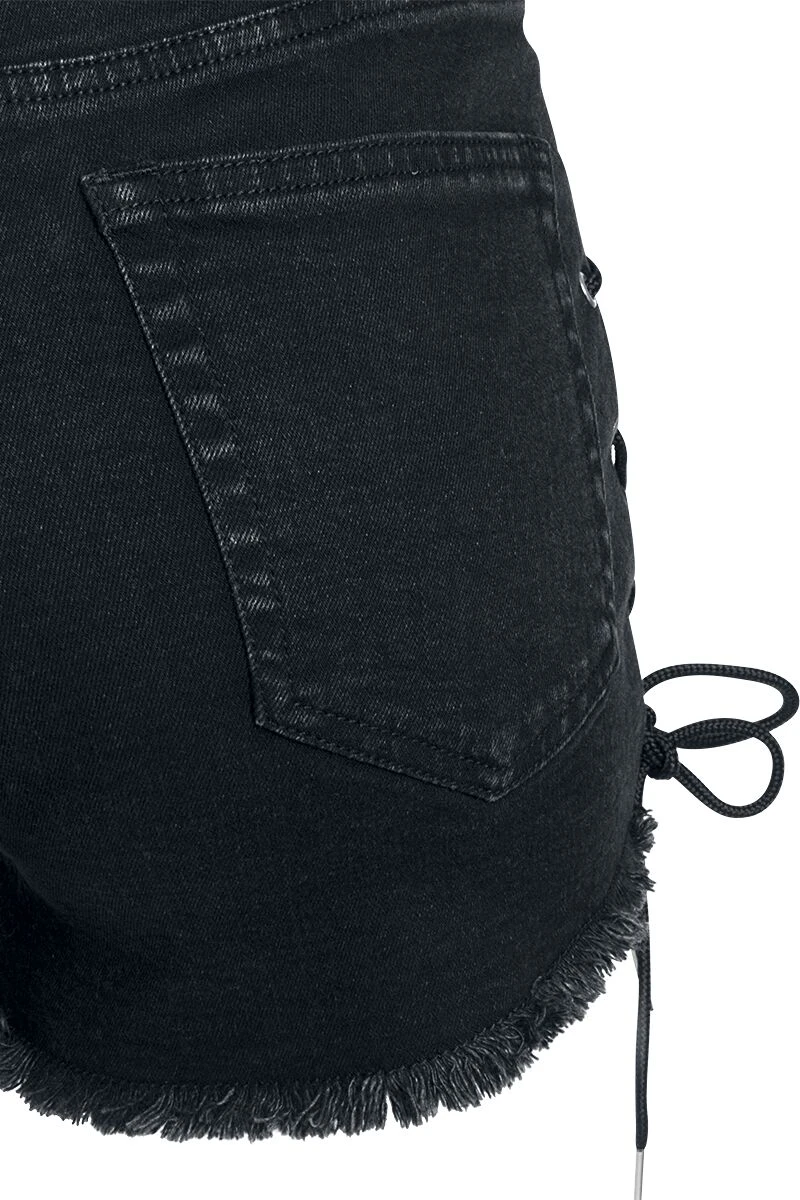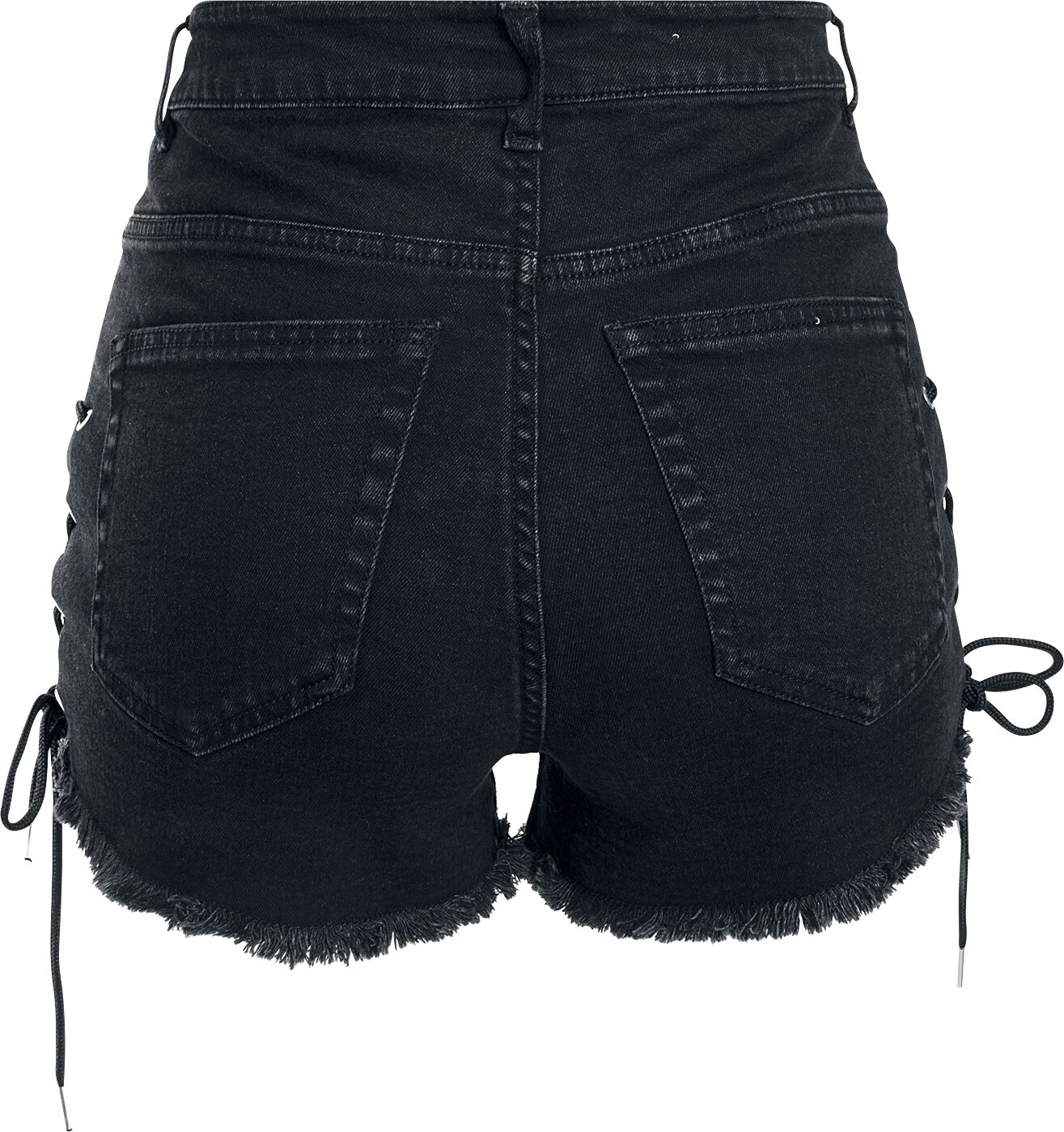 Ein heißes Basic für heiße Tage ist die „Ladies Highwaist Denim Lace Up Short“-Hotpant von Urban Classics. Die High Waist Hot Pant ist im klassischen 5 Pocket Style und mit Schnürungen an der Seite sowie Lochnieten ausgestattet. Ein weiterer Hingucker ist der ausgefranste Beinsaum. Mit bauchfreiem Top ein perfekter Festival-Look.