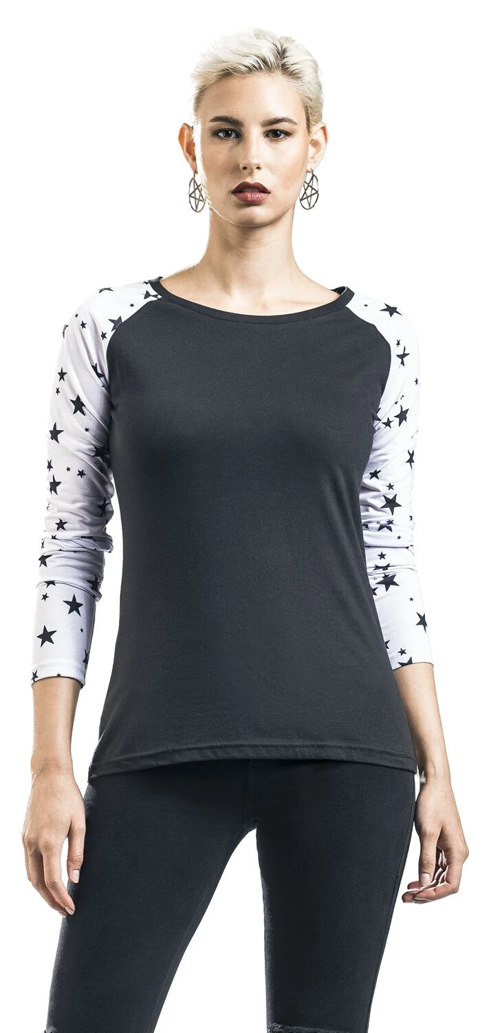 – lange kontrastfarbene Raglanärmel mit Allover-Print im Sternen-Design