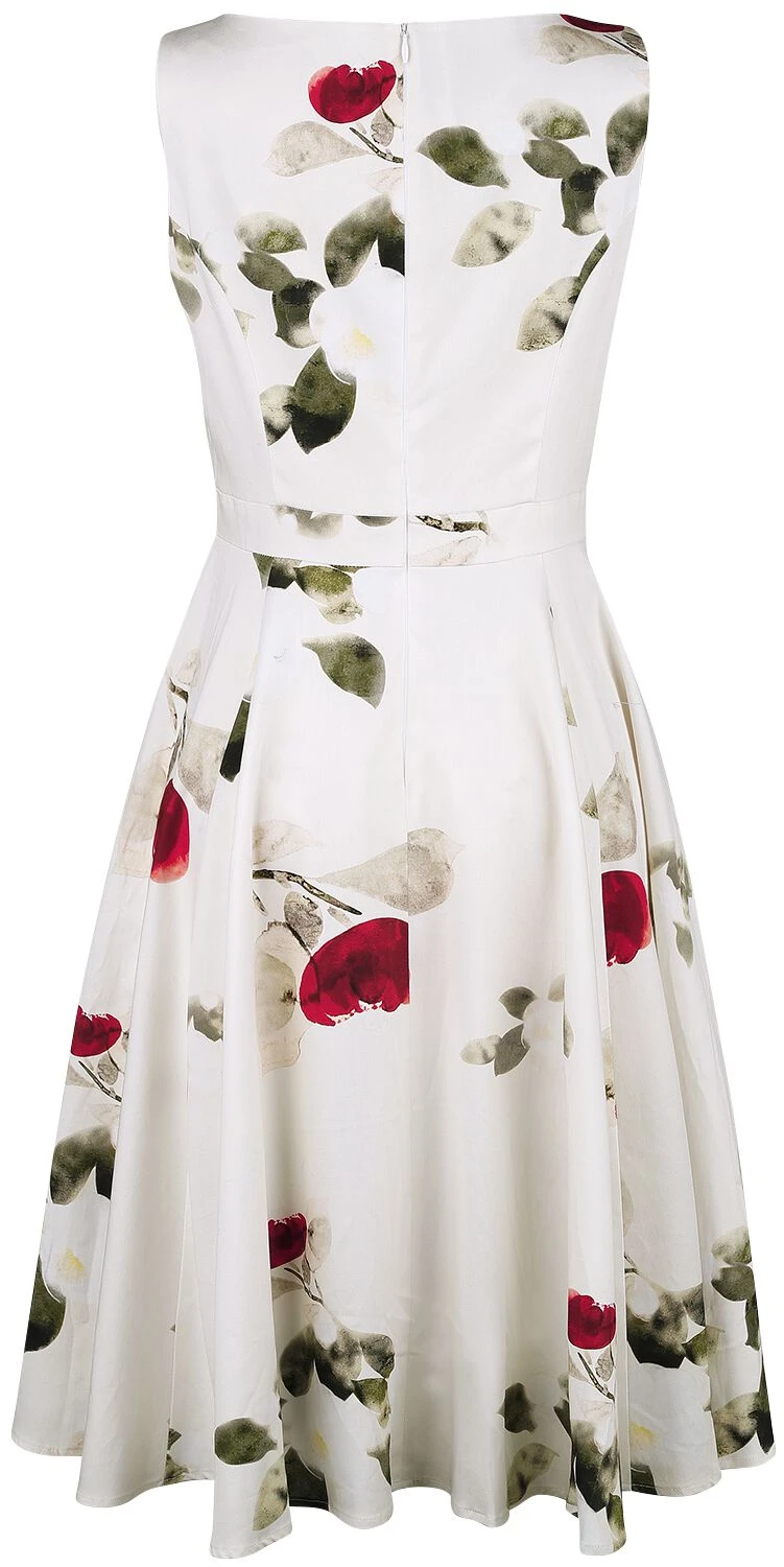 Elegant und feminin präsentiert sich das „Maeva Swing Dress“ in Weiß. H & R London verzaubert dich zudem mit einem wunderschönen floralen Print in Rot und Grün. Der ärmellose Schnitt wird durch einen weiten Rundhalsausschnitt, welcher dem Dress einen klassischen Look verleiht. Ein verdeckter Reißverschluss sorgt im Rücken für eine schöne cleane Optik und dient zum Öffnen sowie Schließen. Das elastische Material ist angenehm tragbar und die seitlichen Einschubtaschen bieten Platz für Kleinigkeiten.