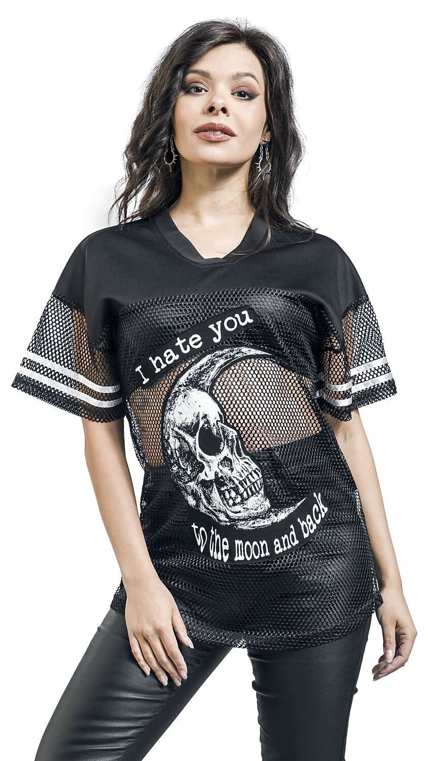 „T-Shirt Mit Alloverprint“ T-Shirt Schwarz Von Gothicana By EMP